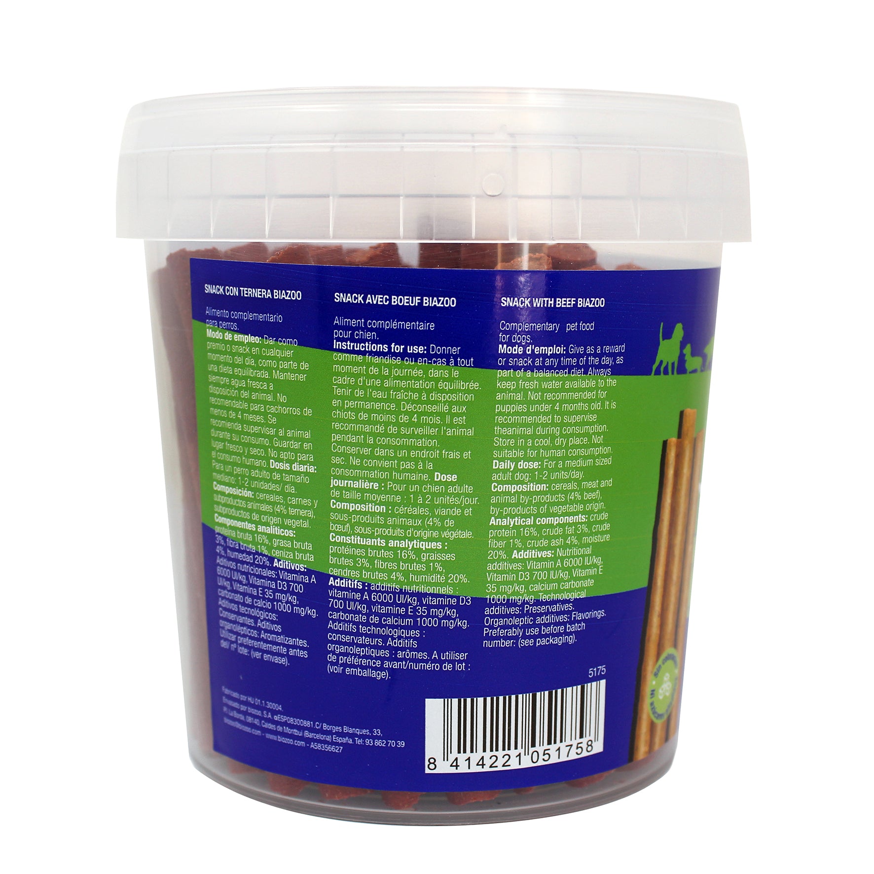 Descubre un snack delicioso y funcional que encantará a tu perro: sabrosas barritas de buey formuladas con ingredientes seleccionados y enriquecidas con vitaminas esenciales A, D3 y E, que contribuyen al bienestar general, el sistema inmunológico y la salud de la piel y la vista.