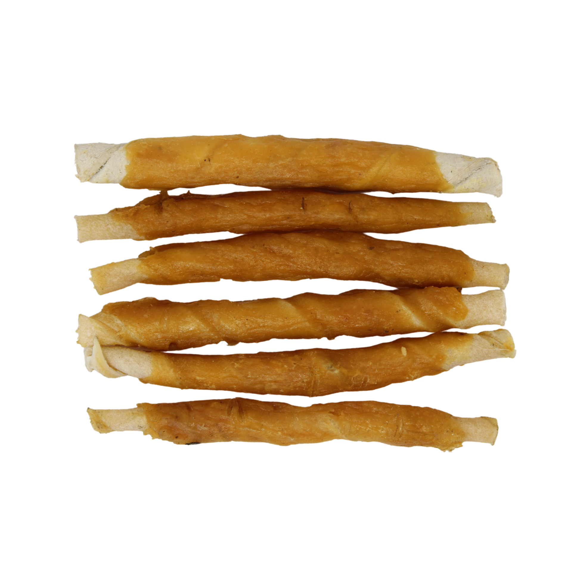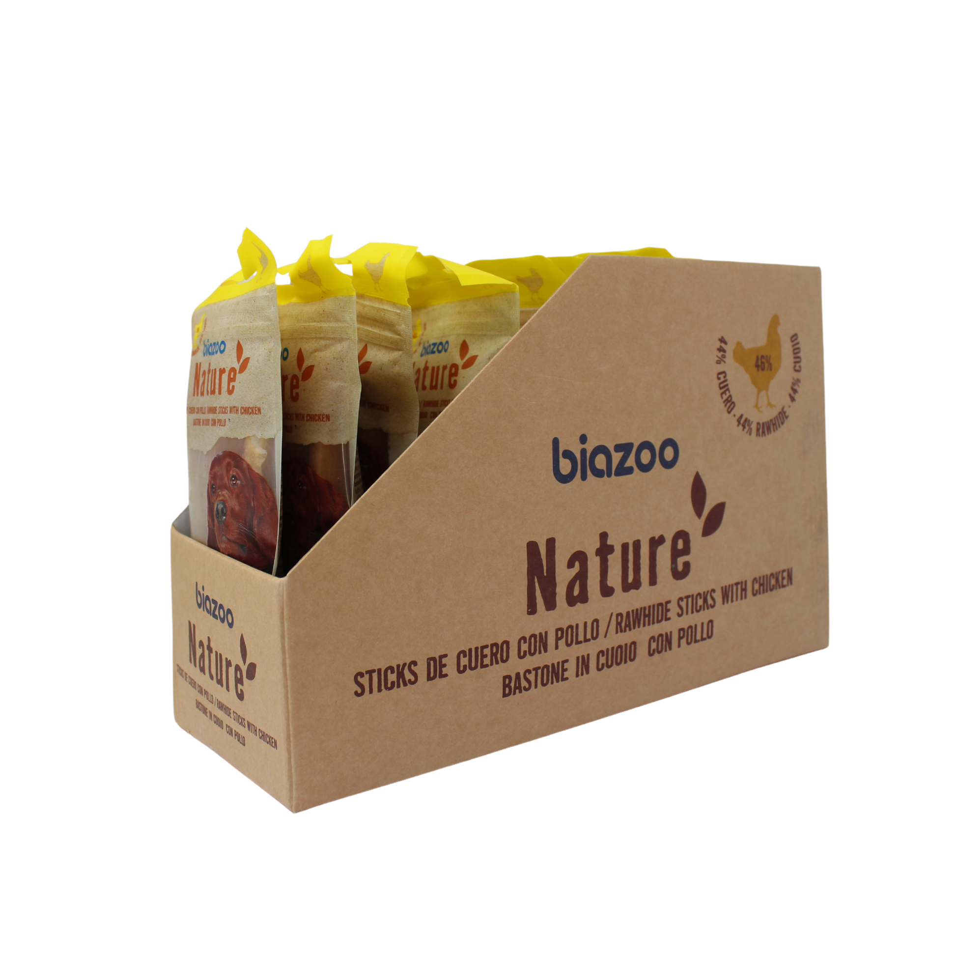 A tasty and functional snack for dogs of all sizes. Made with 44% rawhide and 46% chicken meat, this stick combines an irresistible texture with a high content of quality animal protein.