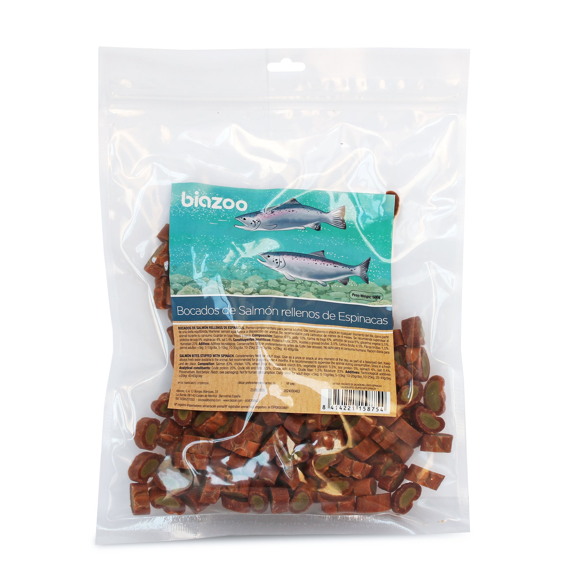 These delicious bites are made with 63% salmon, providing a high content of quality protein and essential Omega-3 and Omega-6 fatty acids, which support healthy skin and a shiny coat.